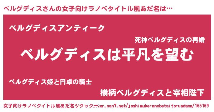 | 胡散臭い通販商品みたいなあだ名 | 『信頼と実績のサプリメント…その名も「ベルグディス」』 |