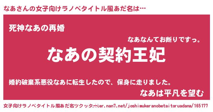 | 男性向けラノベタイトル風あだ名 | 『誰もが恐れるあのなあが、ぼくの専属メイドになるようです。』 |