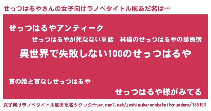 | 意味不明あだ名 | 『永久保存せっつはるや』 |