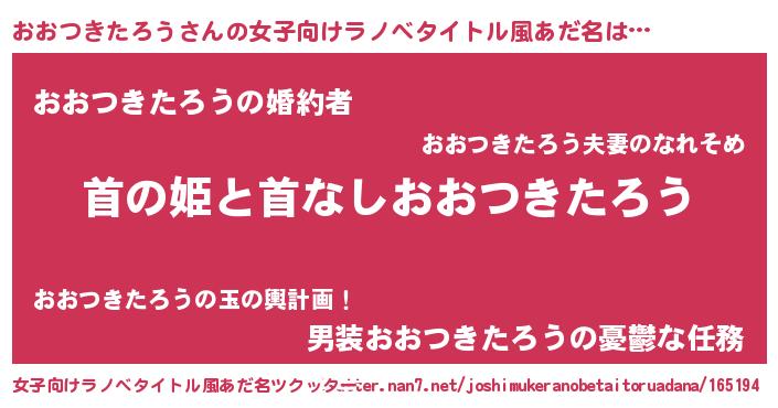 | 男性向けラノベタイトル風あだ名 | 『はたらくおおつきたろうさま!』 |