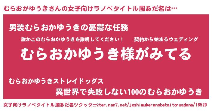 | ヘコむあだ名 | 『むらぷりん』『むらおかゆうき(爆)』 |