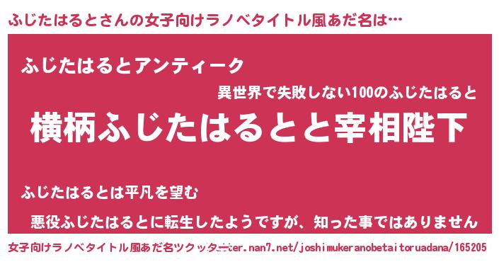 | 男性向けラノベタイトル風あだ名 | 『ふじたはるとに滅ぼされるだけの簡単なお仕事です』 |