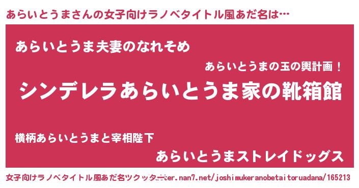 | 男性向けラノベタイトル風あだ名 | 『冴えないあらいとうまの育てかた』 |