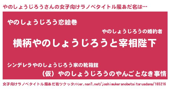 | 男性向けラノベタイトル風あだ名 | 『やのしょうじろうに滅ぼされるだけの簡単なお仕事です』 |