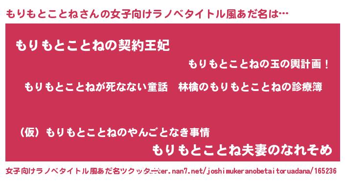 | ヘコむあだ名 | 『もりもとことね(遠い目)』『もりにー』 |