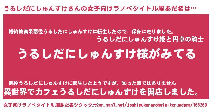 | 欧米人風あだ名 | 『ウサインうるしだにしゅんすけ』 |