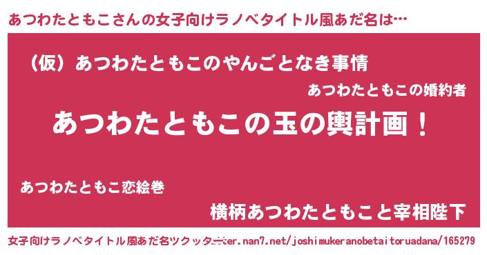 | 男性向けラノベタイトル風あだ名 | 『転生したらあつわたともこだった件』 |