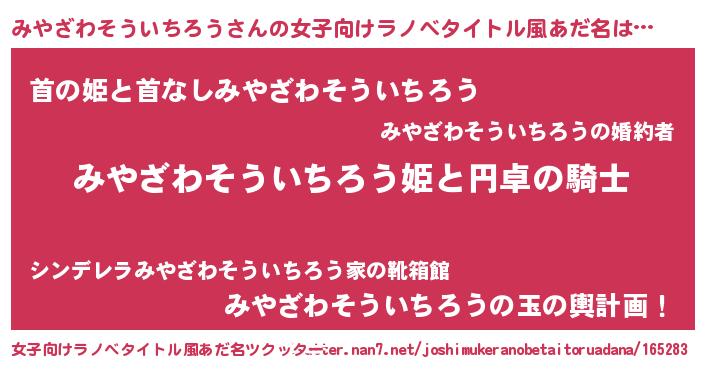 | ヒーロー風カッコイイあだ名 | 『スーパーミヤザワソウイチロウ』 |