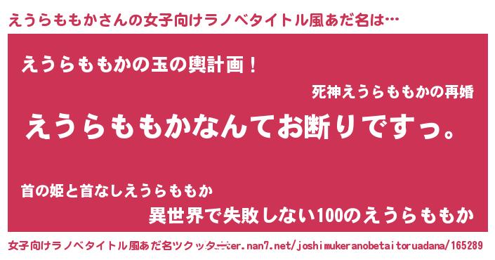 | ヘコむあだ名 | 『えうらももか(笑)』『えうを』 |