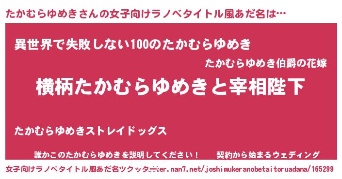 | 意味不明あだ名 | 『永久保存たかむらゆめき』 |