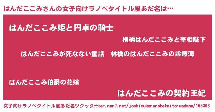 | 男性向けラノベタイトル風あだ名 | 『魔弾の王とはんだここみ』 |