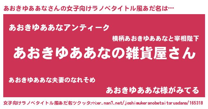 | 男性向けラノベタイトル風あだ名 | 『やはりあおきゆああなの青春ラブコメはまちがっている 』 |