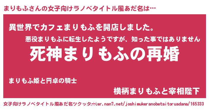 | ヘコむあだ名 | 『まりもふ(小並感)』『まりふぇ~』 |