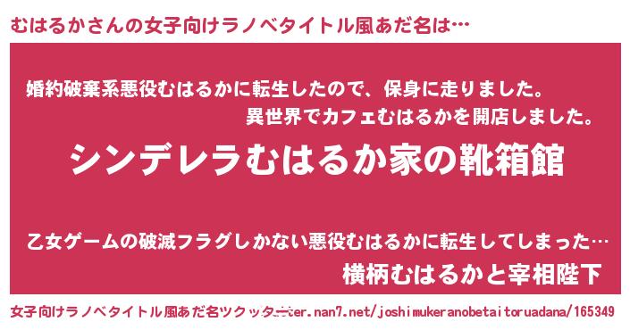 | ヘコむあだ名 | 『むはるか(苦笑)』『むはにゅー』 |