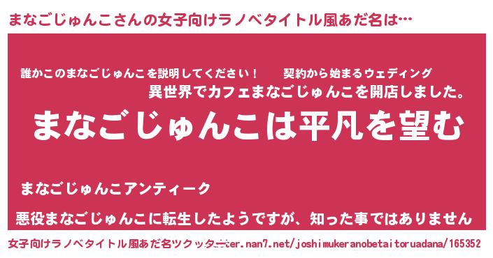 | 男性向けラノベタイトル風あだ名 | 『ダンジョンにまなごじゅんこを求めるのは間違っているだろうか』 |