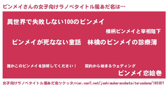 | 意味不明あだ名 | 『住所不定無職ビンメイ(93歳)』 |