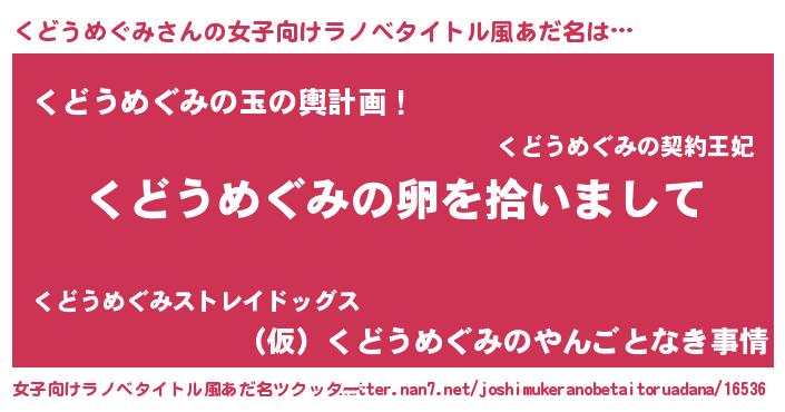 | 胡散臭い通販商品みたいなあだ名 | 『伝統あるサプリメント…その名も「くどうめぐみ」』 |