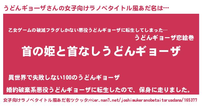 | 男性向けラノベタイトル風あだ名 | 『はたらくうどんギョーザさま!』 |