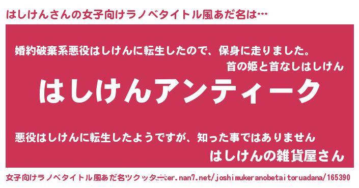 | 胡散臭い通販商品みたいなあだ名 | 『テレビで話題の高麗人参…その名も「はしけん」』 |