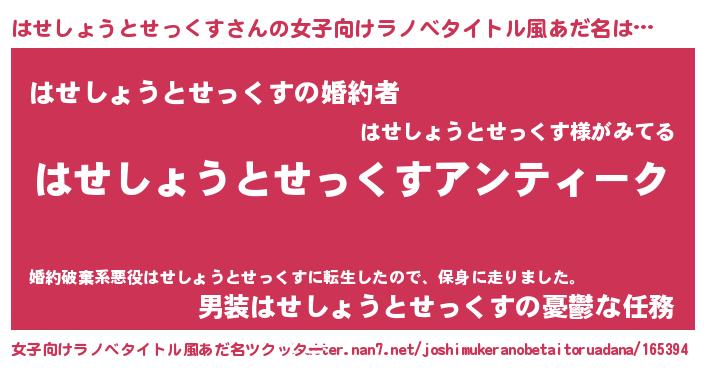 | 胡散臭い通販商品みたいなあだ名 | 『ガンによく効く高麗人参…その名も「はせしょうとせっくす」』 |