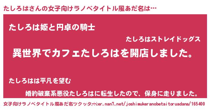 | 男性向けラノベタイトル風あだ名 | 『誰もが恐れるあのたしろはが、ぼくの専属メイドになるようです。』 |