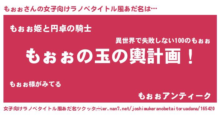 | 胡散臭い通販商品みたいなあだ名 | 『モテモテ間違いなし霊験あらたかなお札…その名も「もぉぉ」』 |