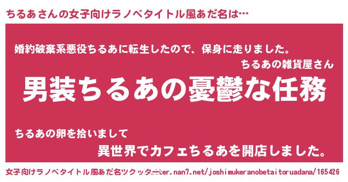 | ヒーロー風カッコイイあだ名 | 『ネオチルア』『ウルトラちるあマン』 |
