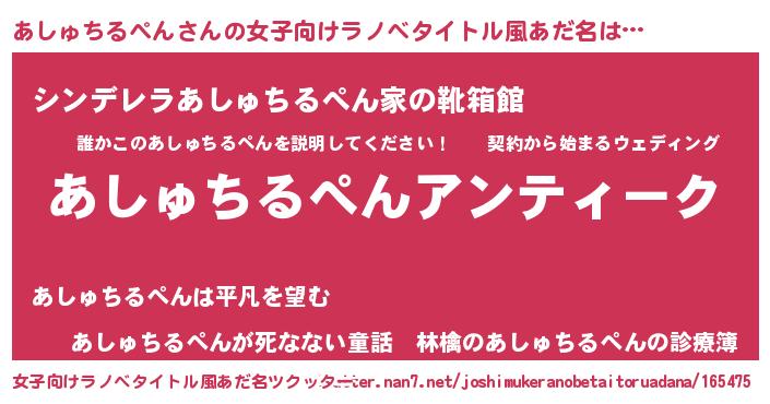 | 胡散臭い通販商品みたいなあだ名 | 『テレビで話題の高麗人参…その名も「あしゅちるぺん」』 |