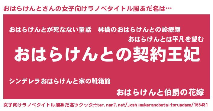 | 胡散臭い通販商品みたいなあだ名 | 『来世でも幸せになれる健康食品…その名も「おはらけんと」』 |