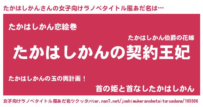 | 男性向けラノベタイトル風あだ名 | 『たかはしかんという概念が存在しない退屈な世界 』 |