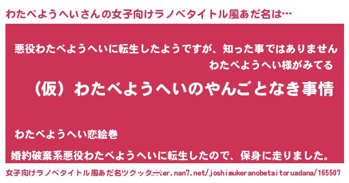 | 胡散臭い通販商品みたいなあだ名 | 『必ず成功する水晶球…その名も「わたべようへい」』 |