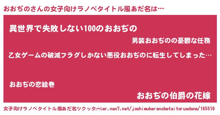 | 意味不明あだ名 | 『住所不定無職おおぢの(6歳)』 |