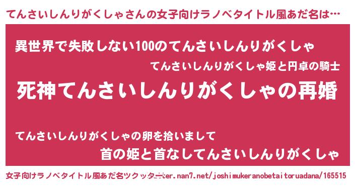 | 胡散臭い通販商品みたいなあだ名 | 『モンドセレクションを受賞した隕石のかけら…その名も「てんさいしんりがくしゃ」』 |