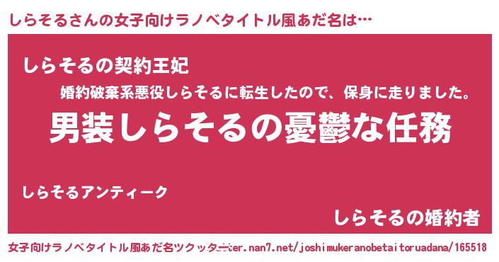 | 男性向けラノベタイトル風あだ名 | 『うちのしらそるが世界を掌握している!』 |