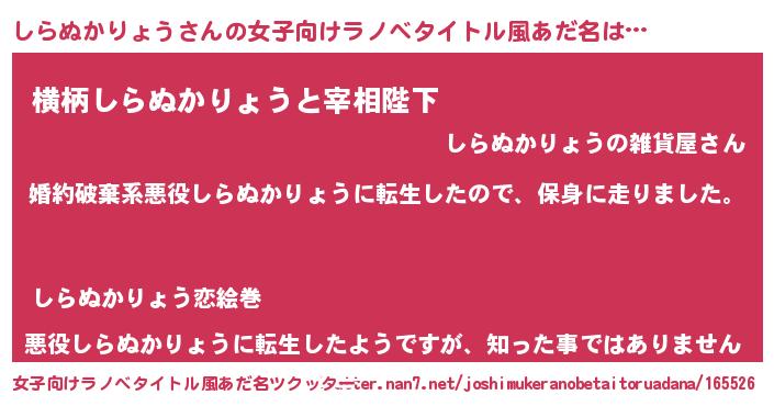 | 男性向けラノベタイトル風あだ名 | 『シラヌカリョウスレイヤー』 |