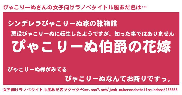 | ファンタジー風あだ名 | 『エターナルピャコリーヌー』 |