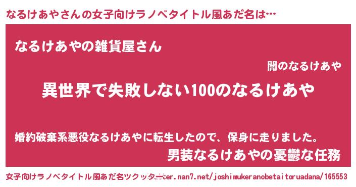 | 男性向けラノベタイトル風あだ名 | 『なるけあやという概念が存在しない退屈な世界 』 |