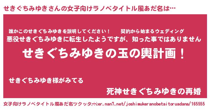 | 胡散臭い通販商品みたいなあだ名 | 『モテモテ間違いなしブレスレット…その名も「せきぐちみゆき」』 |