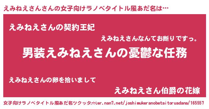 | 伝説のあだ名 | 『古文書に記された吟遊詩人えみねえさん』 |