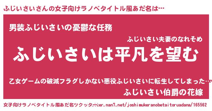 | 男性向けラノベタイトル風あだ名 | 『ダンジョンにふじいさいを求めるのは間違っているだろうか』 |