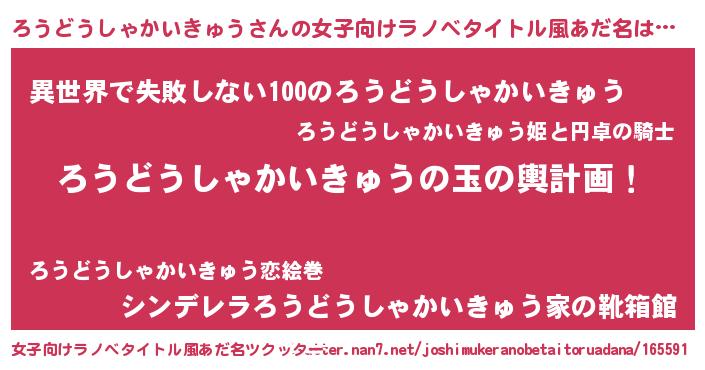 | ヘコむあだ名 | 『ろうどうしゃかいきゅう(爆)』『ろうにー』 |