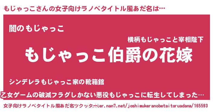 | ファンタジー風あだ名 | 『エターナルモジャッコー』『ゼモジトゥ』 |