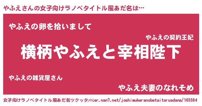 | 男性向けラノベタイトル風あだ名 | 『やふえに滅ぼされるだけの簡単なお仕事です』 |