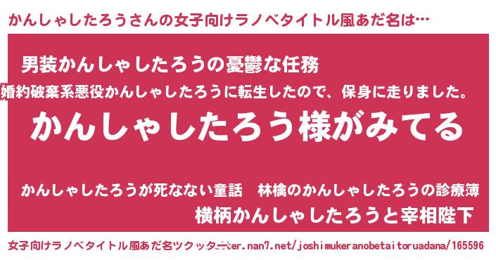 | 男性向けラノベタイトル風あだ名 | 『かんしゃしたろうの嫁は女の子じゃないと思った?』 |