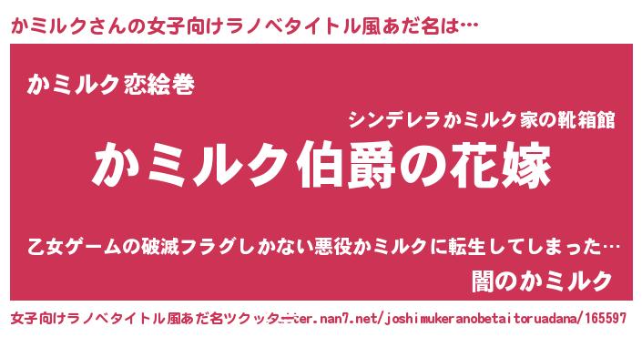 | 胡散臭い通販商品みたいなあだ名 | 『世界が平和になる高級そうな絵画…その名も「かミルク」』 |