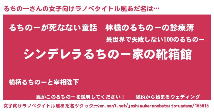 | 意味不明あだ名 | 『住所不定無職るちのー(53歳)』 |