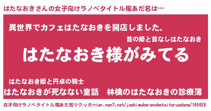 | 男性向けラノベタイトル風あだ名 | 『はたなおきの嫁は女の子じゃないと思った?』 |