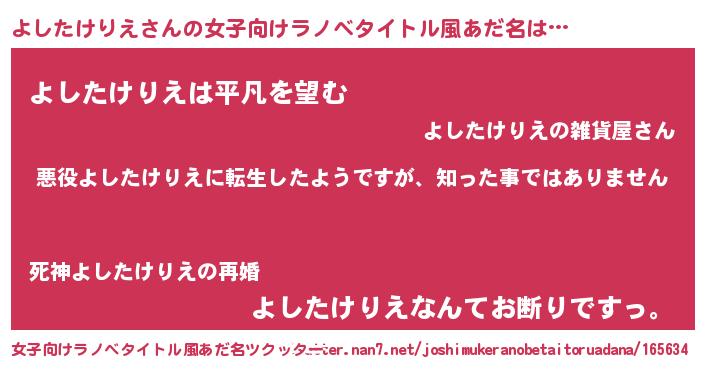 | 意味不明あだ名 | 『住所不定無職よしたけりえ(39歳)』 |