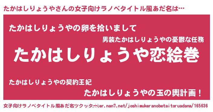 | 男性向けラノベタイトル風あだ名 | 『ノーゲーム・ノータカハシリョウヤ』 |