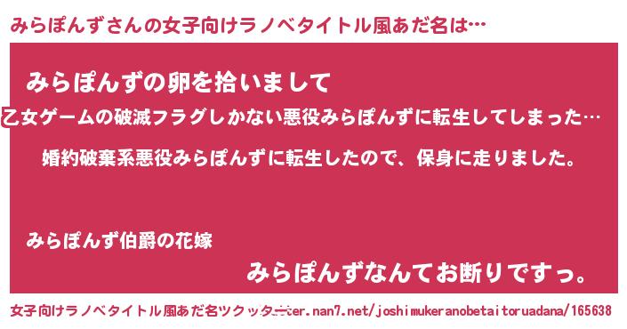 | 意味不明あだ名 | 『めかぶ科みらぽんず属』 |